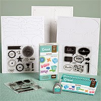 I received the Close to My Heart Cricut Art Philosophy and Artiste Cartridges from my hubby for Christmas. I've had so much fun using them. Each cartridge has 700 images and comes with 3 stamp sets and 3 chipboard dimensional elements that coordinate with the stamps.